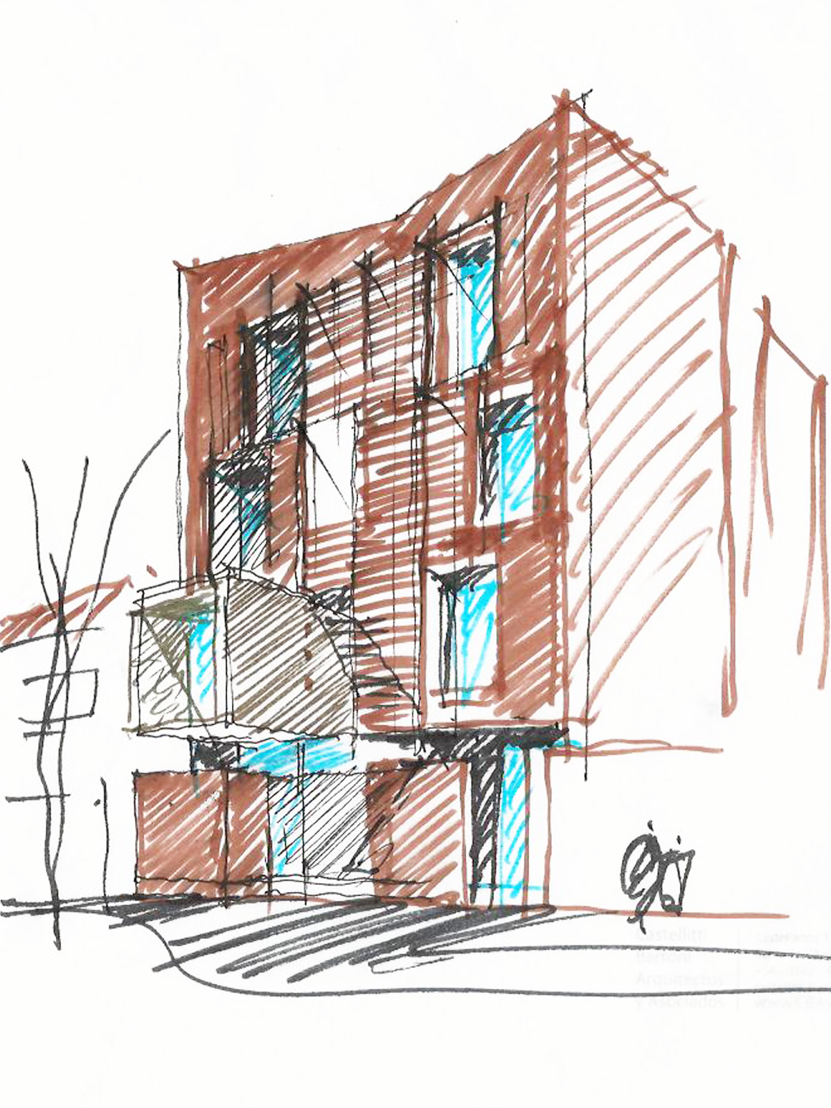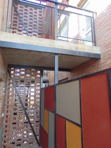 El resultado es el des-armado del programa convencional del edificio de departamentos, al subvertir los mecanismos típicos de organización vertical compacta ya que no hay palier, se accede a las viviendas en distintos puntos del recorrido vertical: a partir de la planta baja en que se accede desde el exterior –la misma vereda- o al centro en los pisos impares, y nuevamente al frente en el 2do. nivel, mediante balcones a la calle.