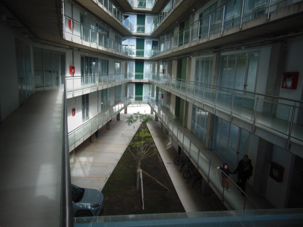 Su valor agregado reside en “ceder” al uso público un área significativa al frente del complejo, que a manera de patio – jardín abierto, se integra al entorno natural liberando la llegada desde allí al “plano noble” de acceso, a la vez que se preserva la arboleda existente, se completa y se pone en valor el borde ribereño de uso público urbano, gestándose de tal manera una nueva “cara visible” de la ciudad hacia el rio que le dio origen y sentido.