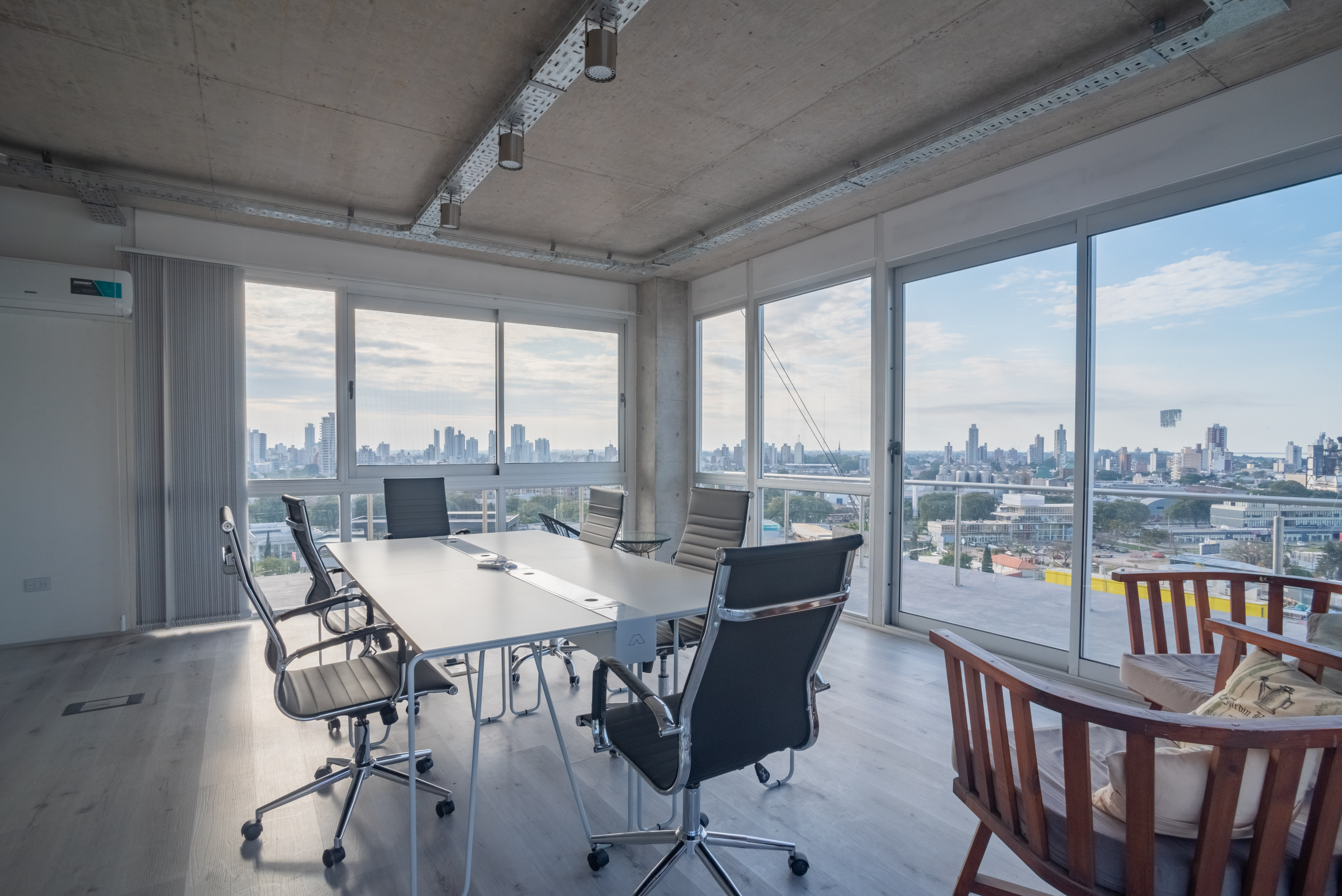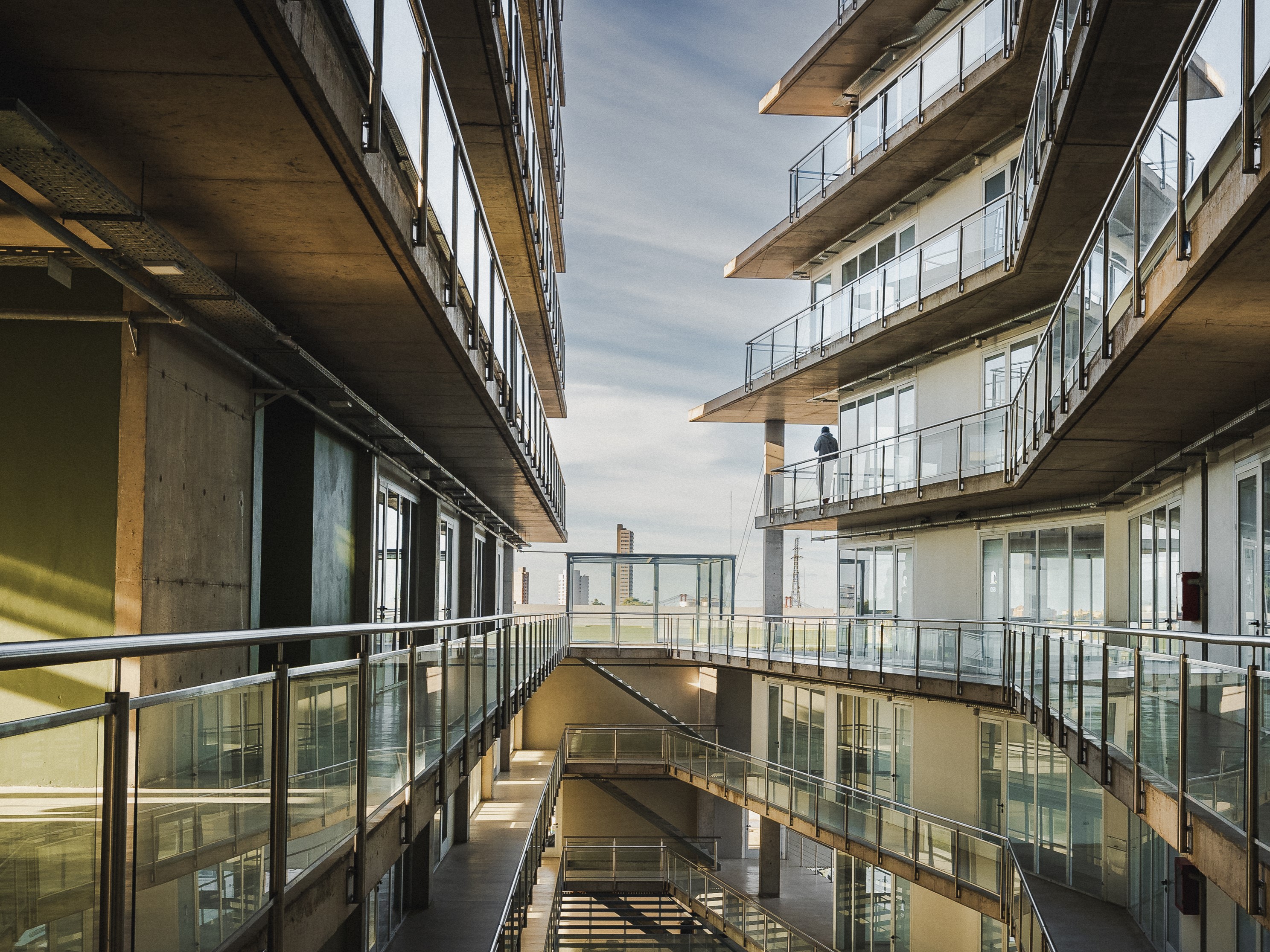 Su valor agregado reside en “ceder” al uso público un área significativa al frente del complejo, que a manera de patio – jardín abierto, se integra al entorno natural liberando la llegada desde allí al “plano noble” de acceso, a la vez que se preserva la arboleda existente, se completa y se pone en valor el borde ribereño de uso público urbano, gestándose de tal manera una nueva “cara visible” de la ciudad hacia el rio que le dio origen y sentido.